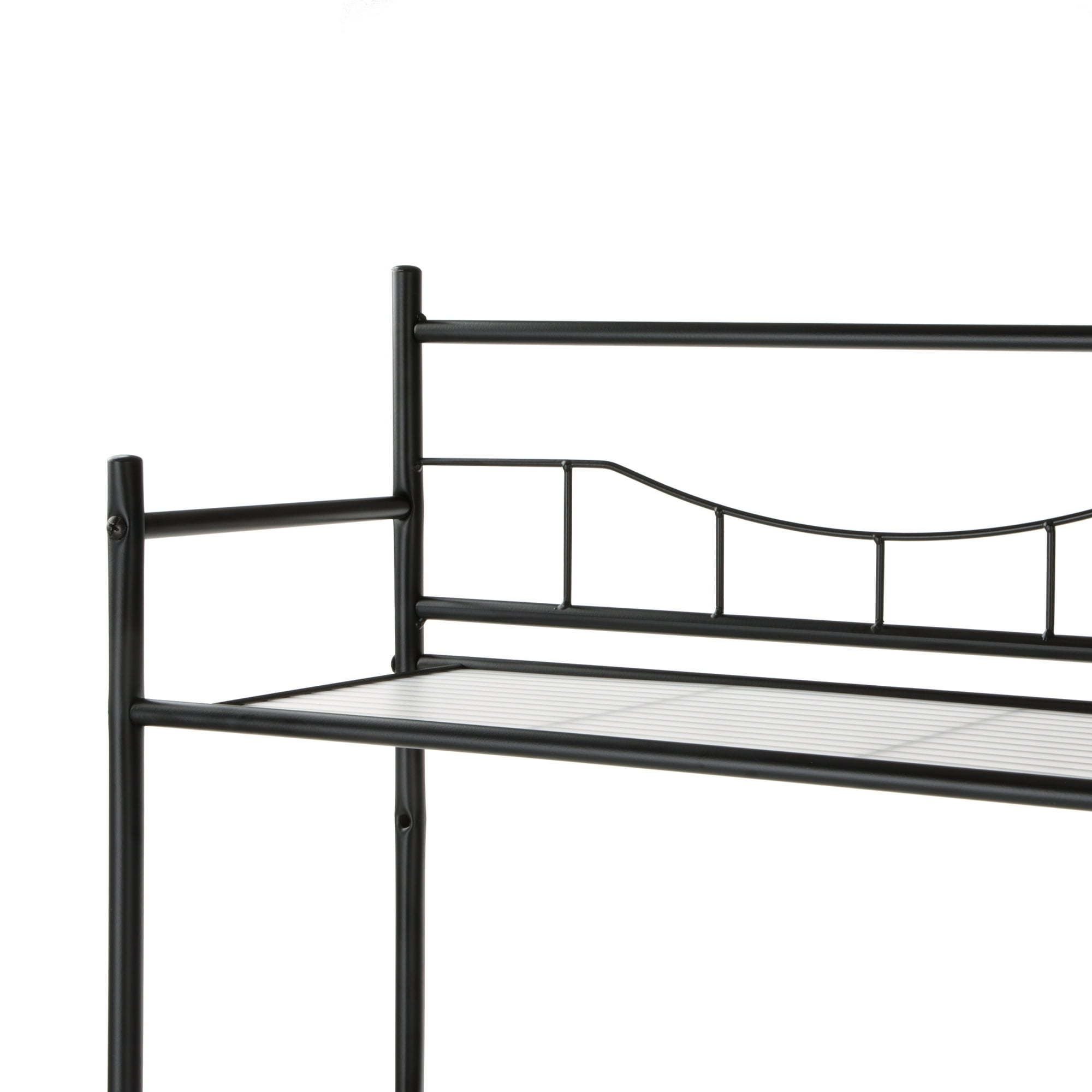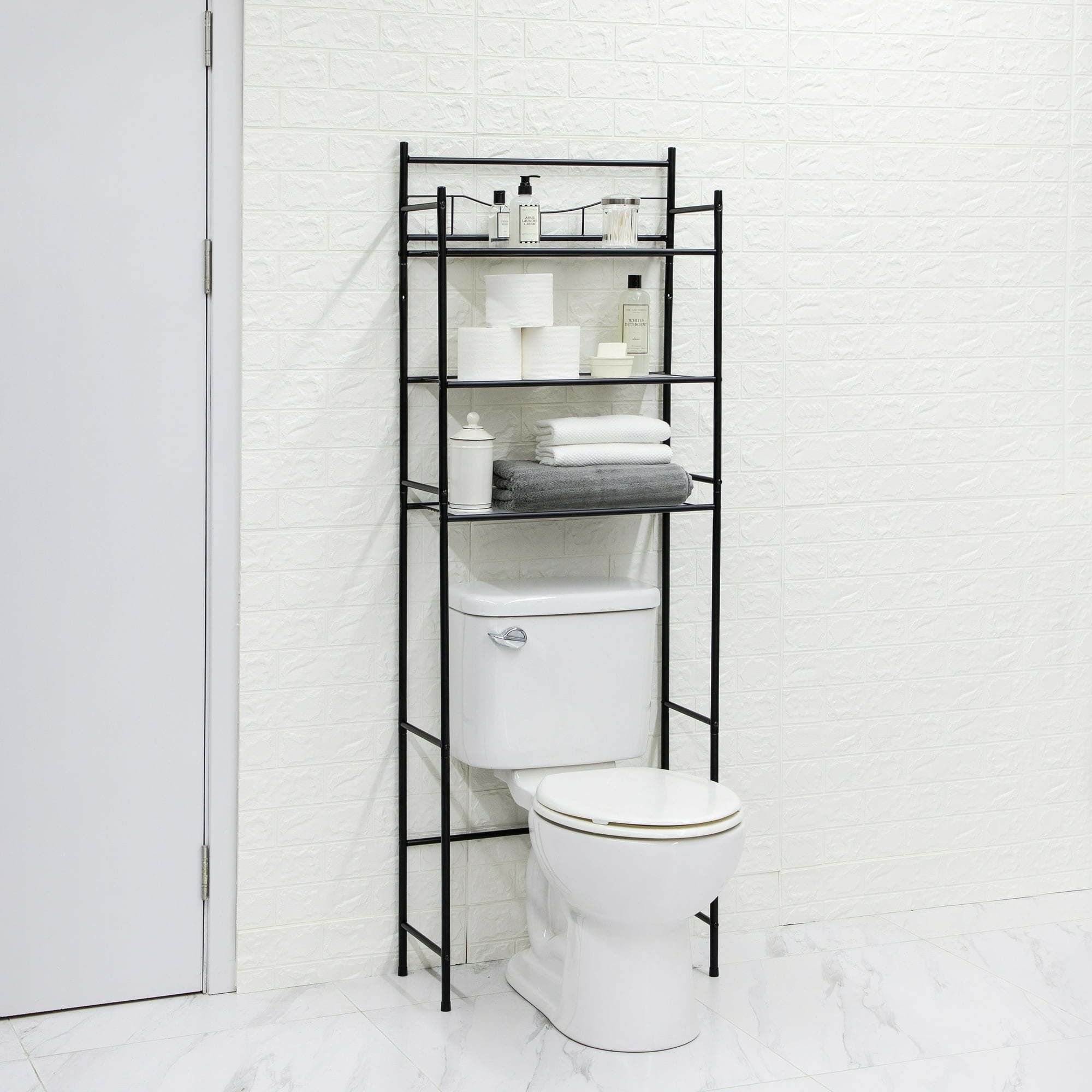 Maximize the space in your bathroom while adding a contemporary design with Over-the-Toilet 3-Shelf Storage Shelf Unit Bathroom Space Saver, Black Finish. It adds three storage shelves to help keep your bathroom clutter free. The slim design fits over most standard toilets, while the black finish adds a touch of style to your space. Each of the three Steel shelves can hold up to 10 pounds. A detailed instruction manual with numbered parts and assembly steps and all necessary hardware is included in the package for easy assembly. This Over-the-Toilet Space Saver is a smart way to maximize your space in a bathroom. Recommended for Senior, Adult and Teen Age Groups.