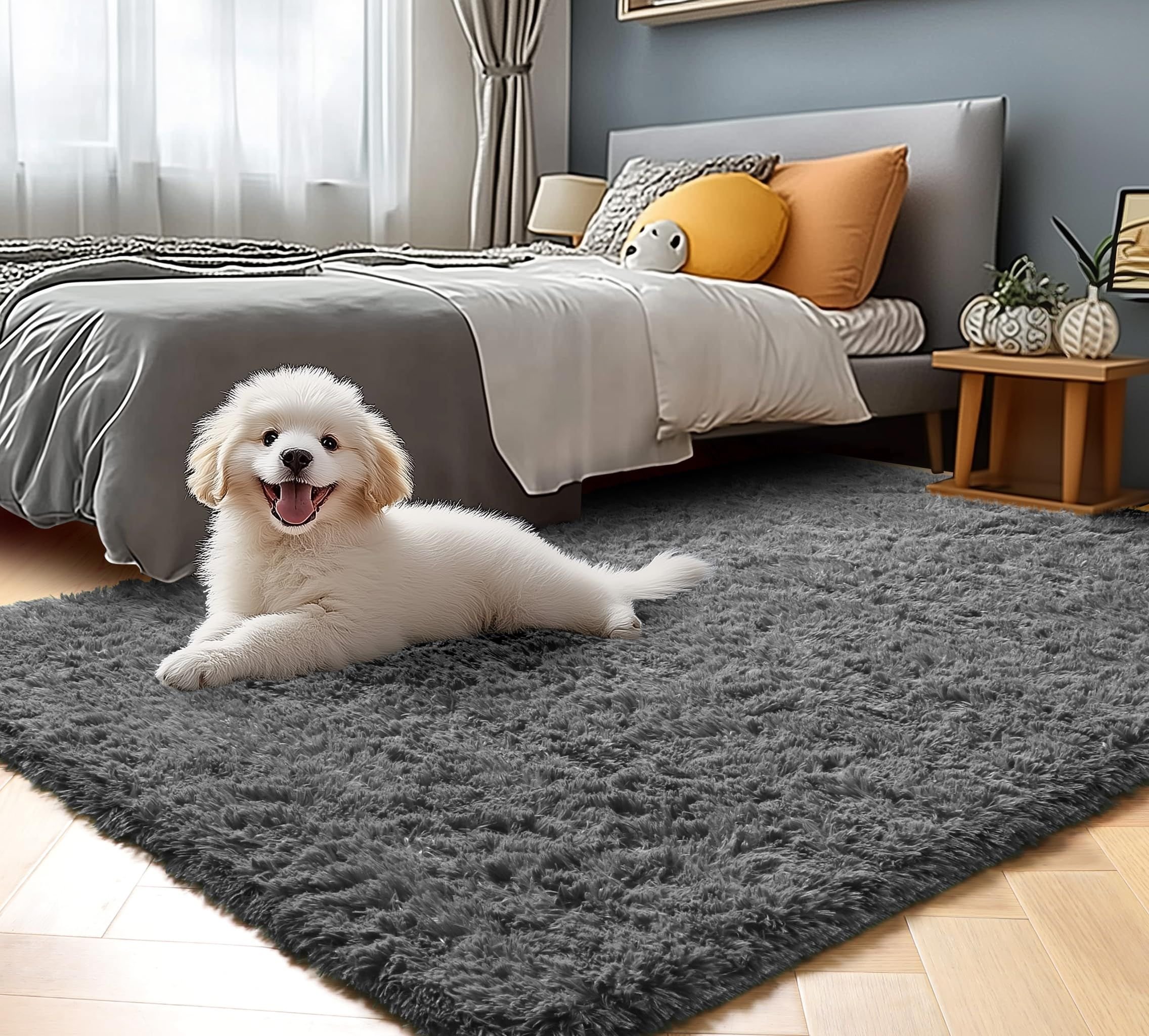 [High-Quality Faux Fur] Experience ultimate softness and comfort with our high-density faux fur. The area rug features a 1.53-inch long pile surface, while also increasing the sponge thickness by 30% compared to our competitors' rugs, without any fiber shedding issues! This incredibly soft velvet carpet is made from environmentally friendly, non-toxic, and hypoallergenic polyester material, making it perfect for people with sensitive or allergic skin.