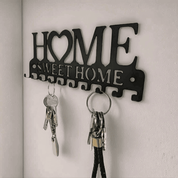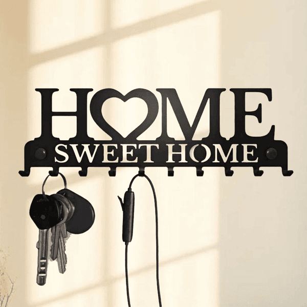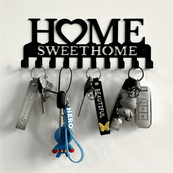 This sleek and durable iron key holder is designed to keep your keys, hats, and small essentials neatly organized and easily accessible by your entryway. It combines practical storage with modern decorative appeal, making it a perfect addition to any home, office, or hallway.Crafted from lightweight yet sturdy iron, this wall-mounted rack features multiple hooks for secure hanging. Its compact design saves space while offering ample storage, and the durable matte black finish resists scratches and complements various decor styles.For detailed size specifications, please refer to the size chart.