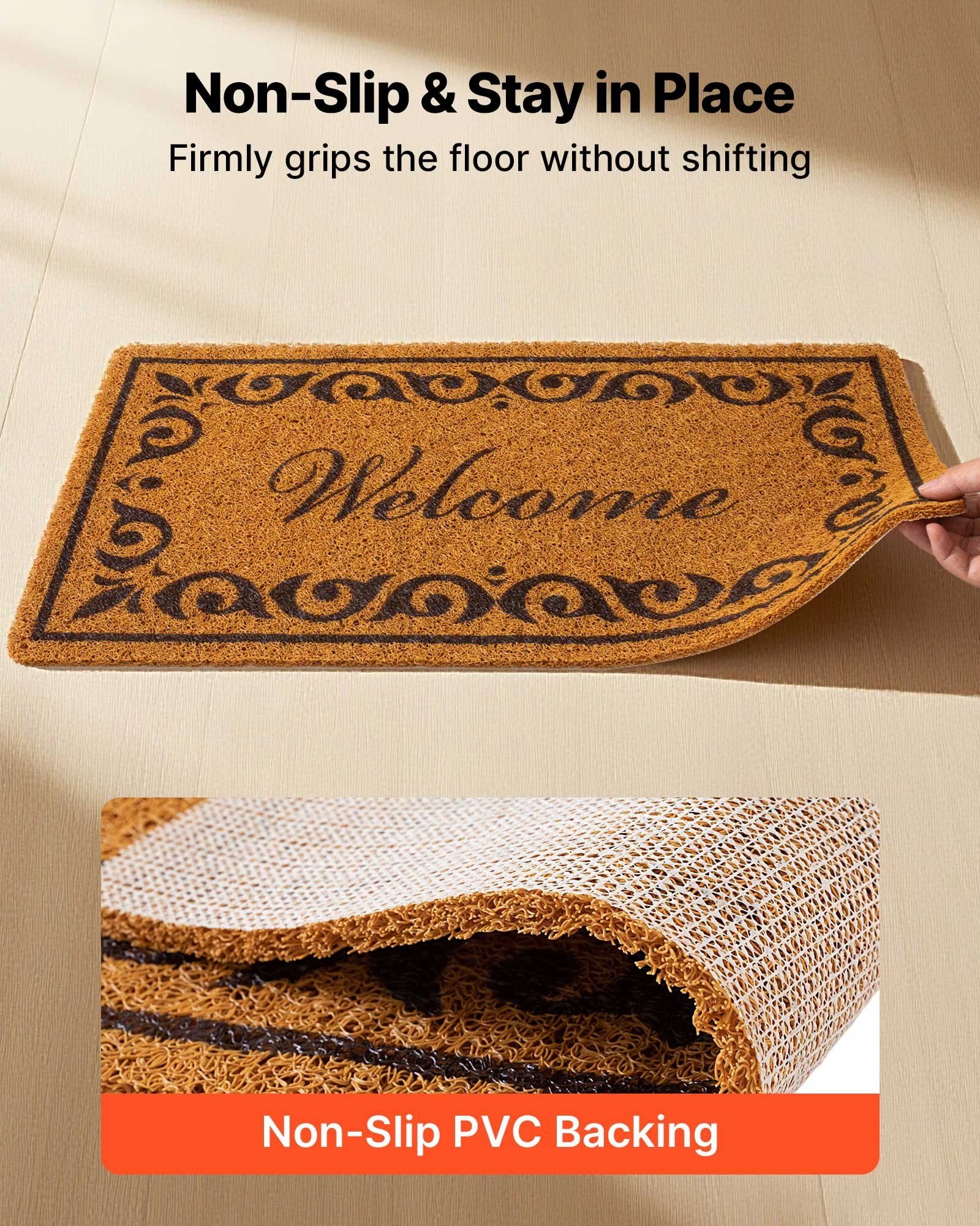Home > VEVOR Door Mat, Welcome Doormat for Outdoor Entrance, 29.5" x 17" All-Weather Faux Coir Entryway Mat with Non-Slip Backing